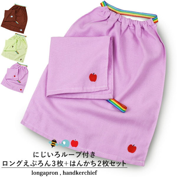 【M】泉州産 刺繍入りたおるえぷろんロングタイプ3枚+ループ付きガーゼはんかち2枚セット(同色)送料無料タオルエプロン 園児用 子供用 キッズ用 キッズスタイ ガーゼスタイ 入園準備 入学準備 表面ガーゼ&裏面パイルの楽天通販情報